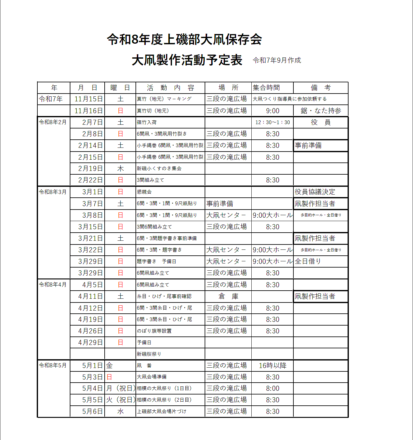 2026年度 年間予定